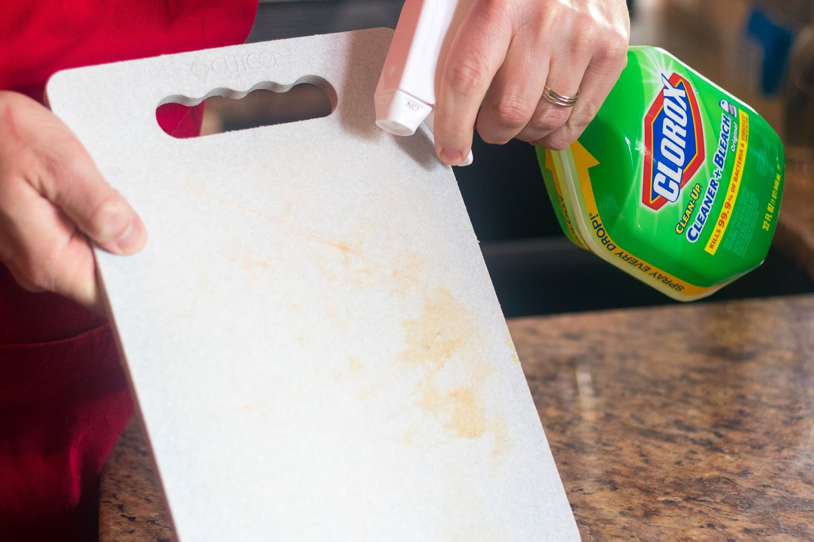 Astuce 4: Clorox Clean Up Spray désinfecte vos planches à découper