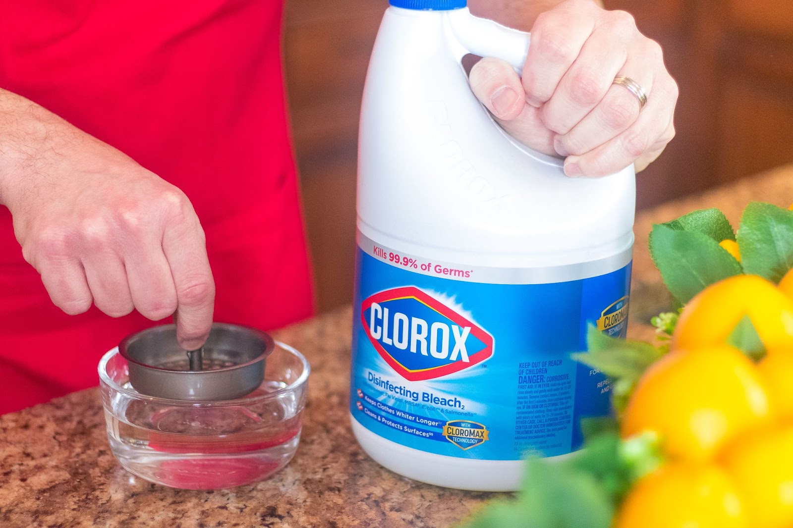 Vous savez probablement déjà que Javel désinfectant Clorox avec Cloromax est idéal pour faire la lessive, mais saviez-vous que vous pouvez le diluer avec de l’eau pour faire tremper vos gadgets et outils de cuisine lorsqu’ils ont du mal à enlever les aliments ou les taches d’eau dure? Vous voudrez diluer votre solution en mélangeant 1/2 tasse d’agent de blanchiment Clorox par gallon d’eau. Faites ensuite tremper vos ustensiles de cuisine pendant cinq minutes, rincez et séchez à l’air.