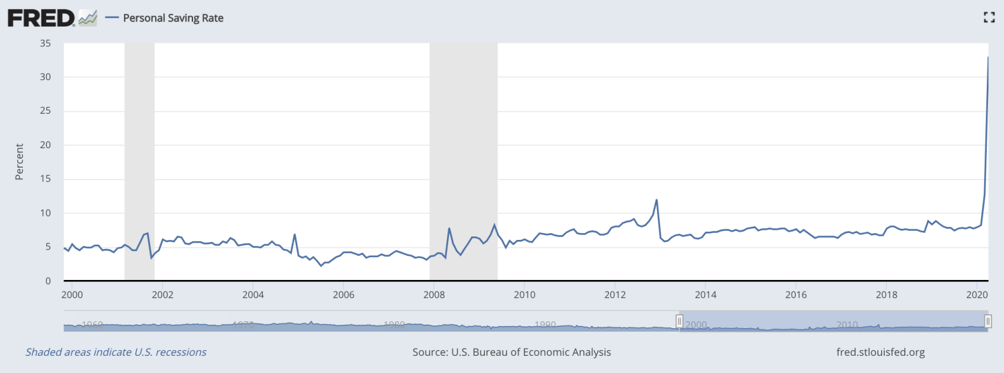 Il n’y a pas de meilleur graphique qui montre que nous pouvons changer si nous voulons changer que le graphique ci-dessous. Il n’a fallu qu’une pandémie mondiale à l’Américain typique pour enfin économiser plus de 30%! Nous sommes adaptables.