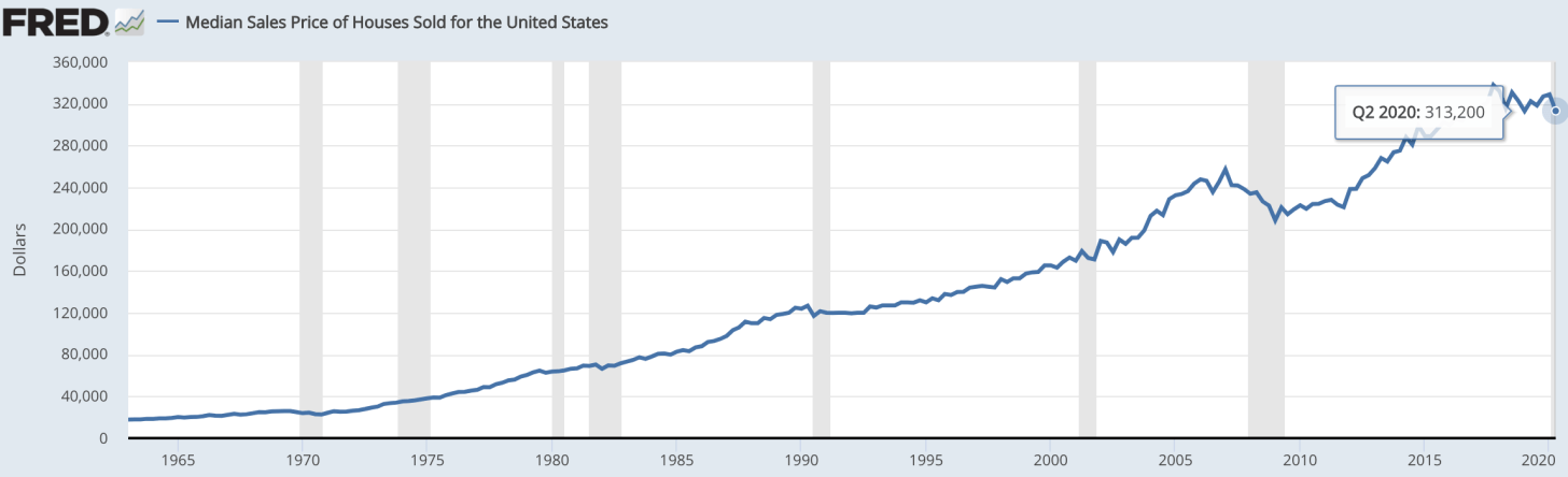 Selon la Réserve fédérale de Saint-Louis, le prix de vente médian des maisons vendues au T22020 était de 313 200 $. Par conséquent, le ménage médian réel aurait besoin de gagner 104 440 $ pour suivre ma règle d’achat de 30/30/3.