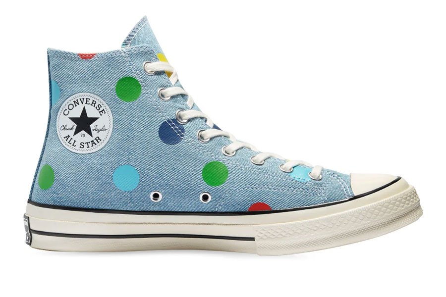 Tyler, The Creator’s Golf Wang poursuit sa collaboration avec Converse, en s’attaquant à l’une des chaussures les plus emblématiques de la marque, la Chuck 70. La chaussure bénéficie d’une mise à niveau en denim avec des couleurs éclatantes grâce aux pois. Ils sont juxtaposés par des trous en dentelle argentée brillante tandis que Tyler laisse le logo Golf Wang au profit de l’insigne classique Converse. Récupérez-les chez certains détaillants comme Subtype le 13 novembre à 9h.