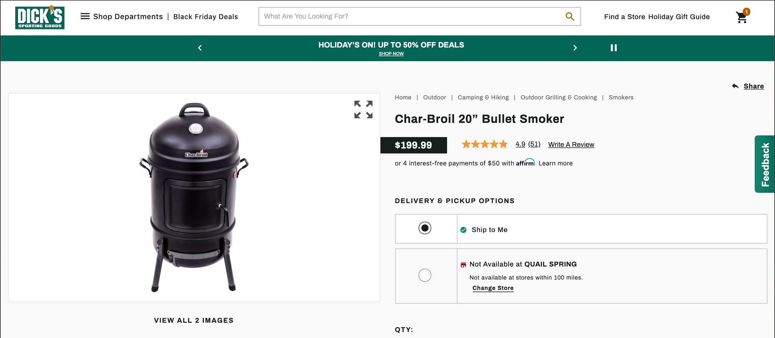 Tout gourmet sérieux a besoin d’un fumeur et Dick’s a l’embarras du choix. Ce Fumoir Char-Broil est parfait pour la personne qui veut commencer à perfectionner son métier cet hiver.