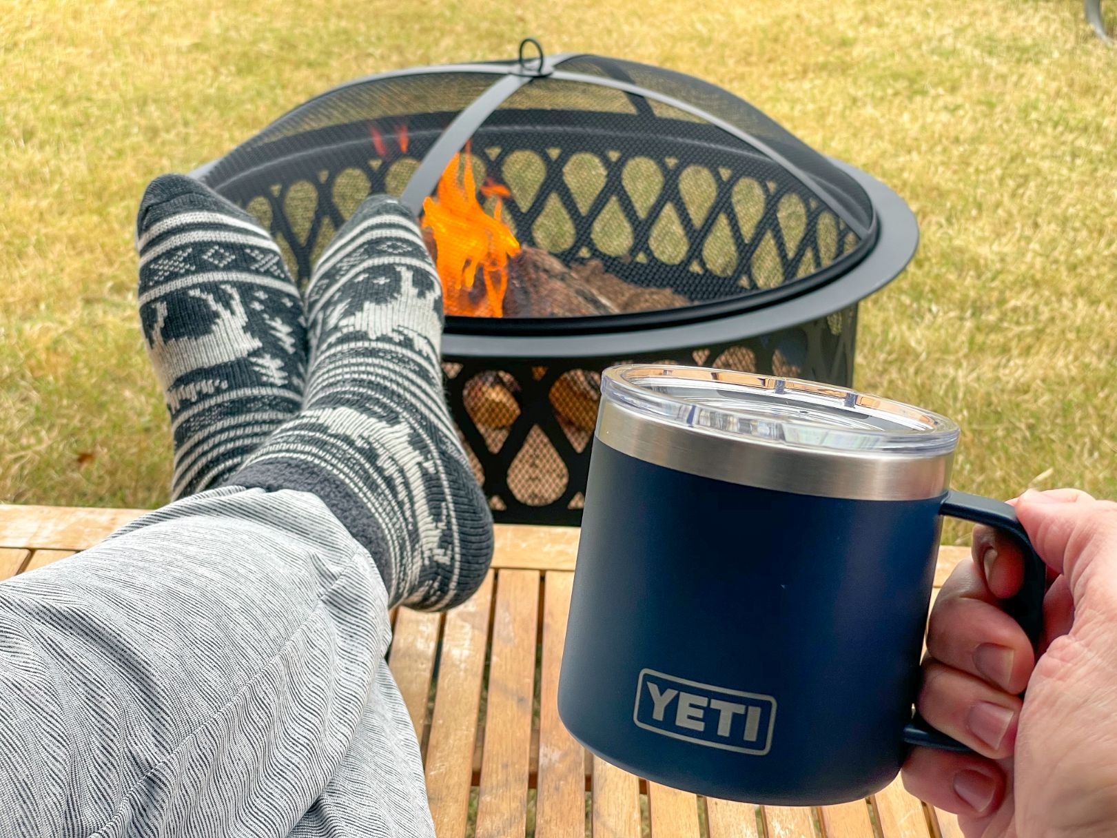 Nous nous réchauffons avec ça Foyer Landmann Magnafire dans notre cour. Sans parler de mon nouveau Chaussettes Field and Stream Cozy Cabin! En quoi un feu de camp est-il un équipement gastronomique essentiel? Il est parfait pour rester confortable tout en sortant de la maison et rôtir des hot dogs ou des s’mores par une journée froide.