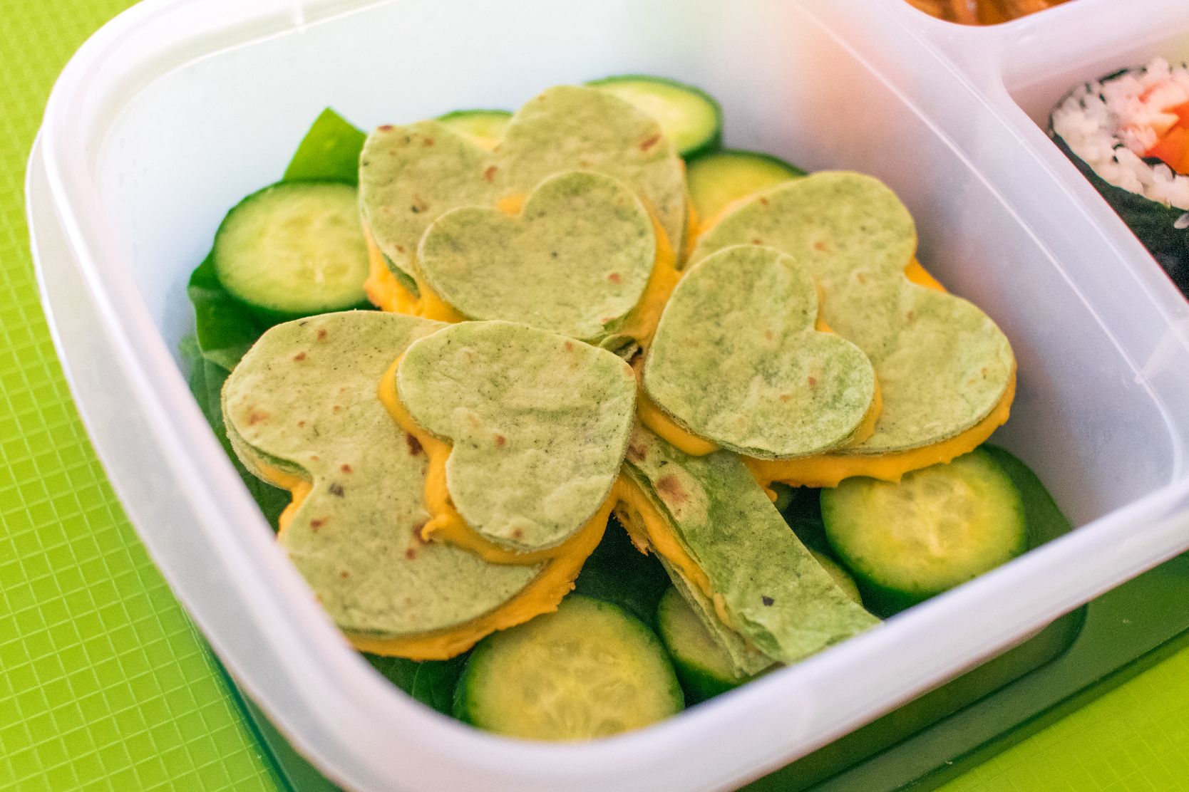 Si vous mélangez des cuisines dans le déjeuner de votre enfant, pourquoi ne pas le faire le jour de la Saint-Patrick? J’ai décidé de faire une quesadilla Shamrock en utilisant des emporte-pièces en forme de cœur mais je voulais aussi essayer de faire des sushis. Il était donc parfaitement logique de préparer des plats mexicains et japonais pour un déjeuner lors de vacances irlandaises, non ?! Voici comment j’ai fait ces recettes d’art culinaire pour mes enfants.