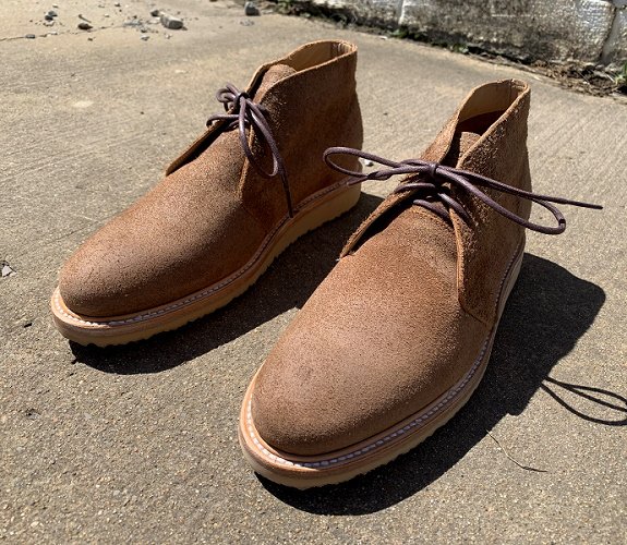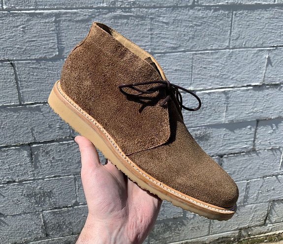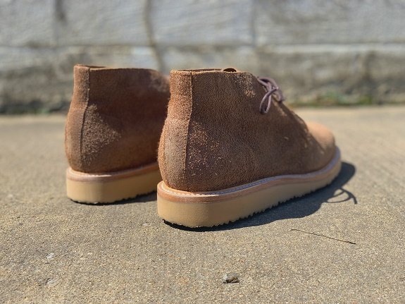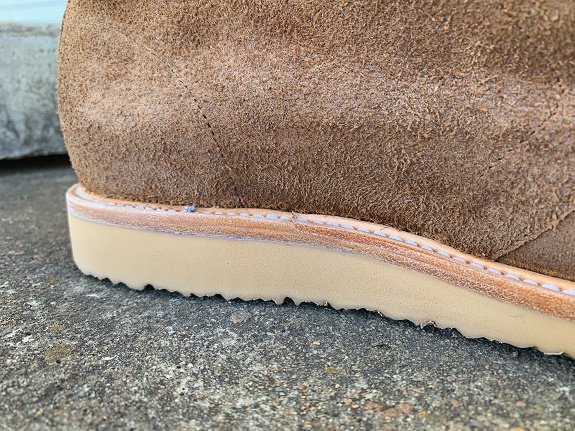 Ces chukkas Tyler arborent des semelles compensées Meramec «Calibre» sur mesure dans une belle nuance de brun sable. Meramec est la même société qui fournit des semelles extérieures à des marques telles que Thorogood, Carolina Boots, Rancourt, etc. Leur matériau Maxum-Lite ML308 utilisé pour ces chukkas est un polyuréthane semblable au caoutchouc qui met l’accent sur le confort léger et la résistance au glissement. Ce sont d’excellentes caractéristiques pour des bottes comme celles-ci, d’autant plus que nous passons du printemps à l’été et que la météo du jour n’est jamais prévisible. Je soupçonne que ceux-ci seront assez durables au fil du temps.