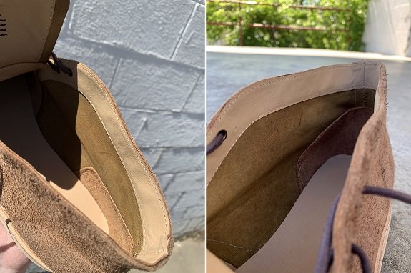 Même si nous avons affaire à un cuir rugueux légèrement ciré, la zone des orteils et l’empeigne sont assez lisses avec une sieste notable qui n’est pas trop différente du daim. En revanche, les quartiers et les arrières des deux bottes semblent flous! Presque comme si tu étais écorché (de préférence en peluche) Ours Fozzie et a utilisé sa peau pour les chaussures. J’adore la texture et le caractère de la tige; ils s’accordent très bien avec d’autres textures distinctes comme des chemises en denim et en tissu Oxford. En ce qui concerne les couleurs, je les classerais quelque part entre «brun camel» et bronzage du désert. C’est une couleur très naturelle et terreuse qui devrait être super polyvalente.