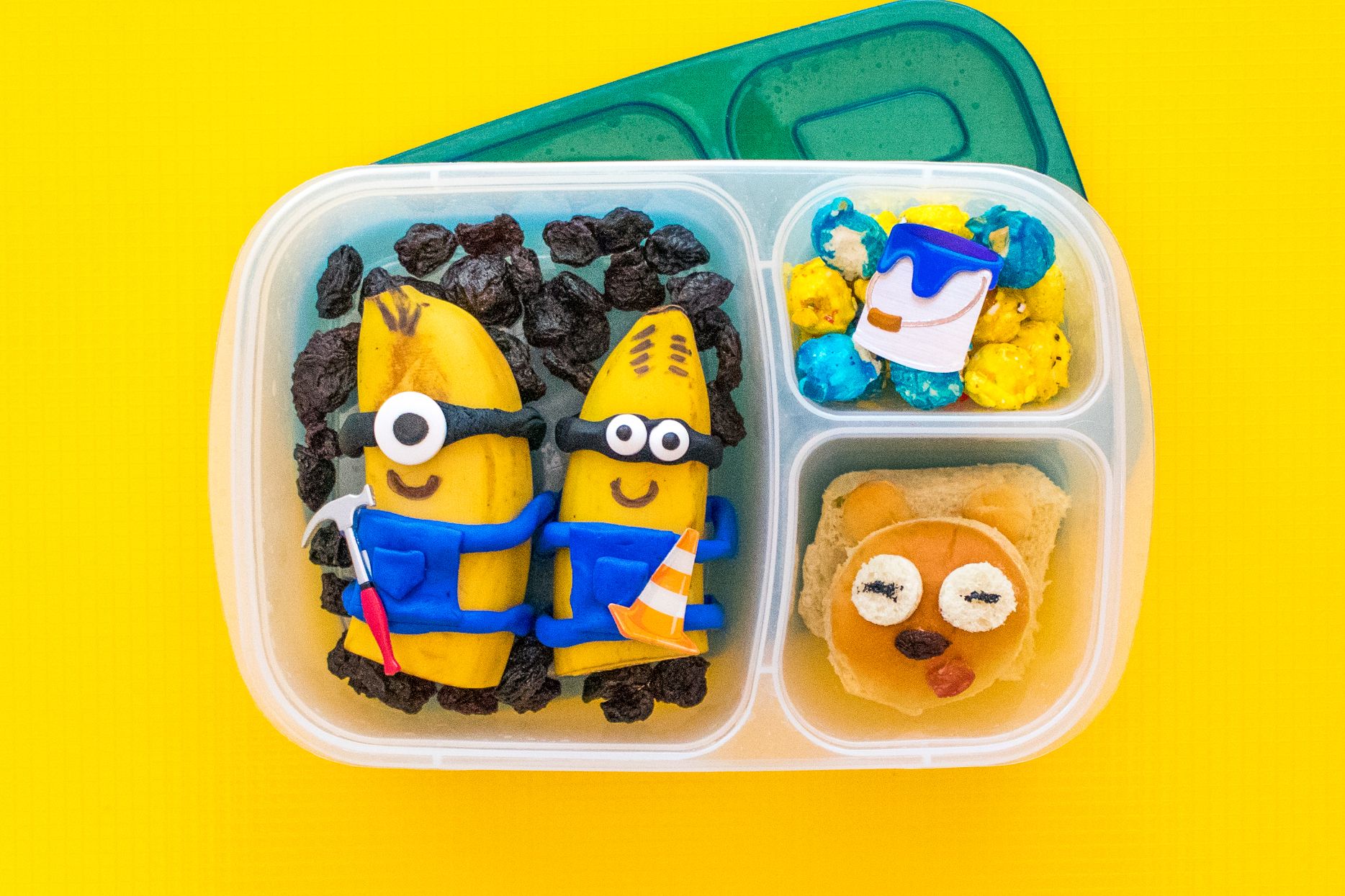 Quel enfant n’aime pas les Minions ? J’ai l’impression que ces personnages de Moi, moche et méchant sont passés d’acolytes mignons à des personnages intemporels qui seront aimés par des générations. C’est pourquoi mon plus jeune à mon aîné aime tous ces créatures. Sans compter que Gru ne pourrait pas faire la moitié de ce qu’il fait sans eux ! C’est pourquoi j’ai dû en faire à nouveau un déjeuner.