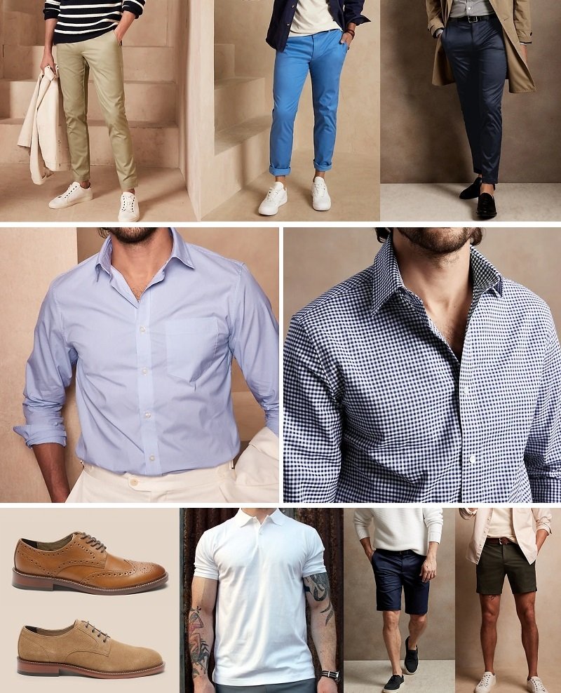 Pas de chino ou autre pantalon. Limité aux hauts / shorts / maillots de bain car ils se penchent sur les vibrations «c’est maintenant l’été». Beaucoup de bases cependant. Des shorts chino aux shorts à taille électronique en passant par les chemises boutonnées imprimées et les t-shirts.