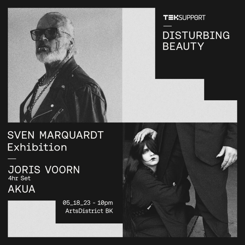 Icône de la vie nocturne berlinoise Sven Marquardt a annoncé son exposition de photos DISTURBING BEAUTY New York Art Week au ArtsDistrict Brooklyn du 18 au 21 mai. En collaboration avec les impresarios de la vie nocturne new-yorkaise Teksupport, DISTURBING BEAUTY verra le photographe berlinois exposer une sélection de ses premiers travaux photographiques capturés dans les années 1980 à Berlin-Est, qui seront présentés par la Galerie Deschler. L’événement d’ouverture du 18 mai verra les performances d’une sélection d’artistes house et techno remarquables, dont Joris Voorn. En coopération avec l’artiste visuel Tavy Hornbrook, Marquardt présente lors de cette soirée spéciale plus de 100 visuels sous forme d’art vidéo et crée une expérience numérique en laissant les images et le son se mélanger.