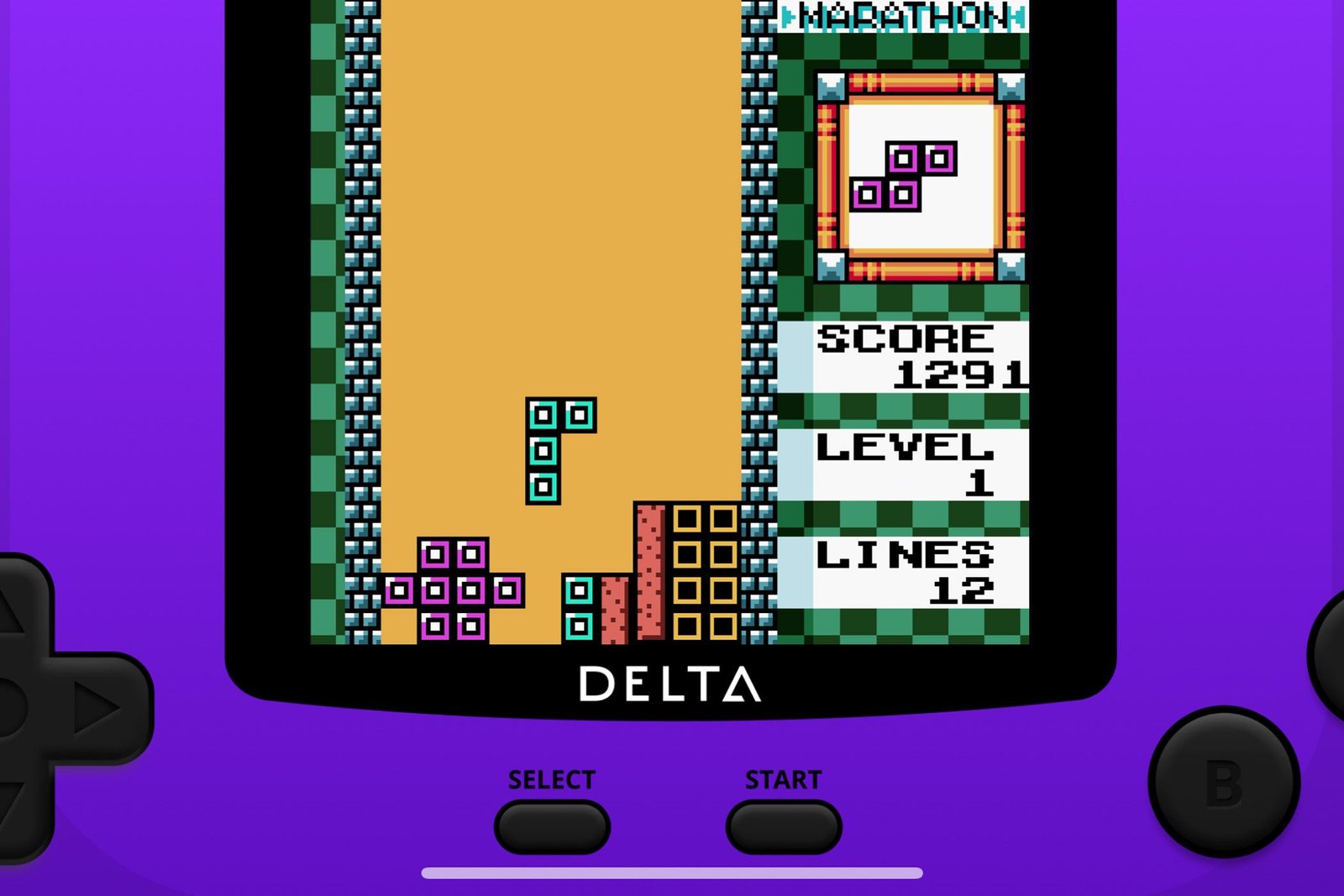 Delta n'est livré avec aucun jeu. Vous devez utiliser vos propres ROM de jeu et certains systèmes nécessitent une copie du micrologiciel à partir du matériel d'origine. Vous pouvez également essayer des logiciels homebrew, comme l'excellent clone de Tetris Apotris pour la Game Boy Advance.