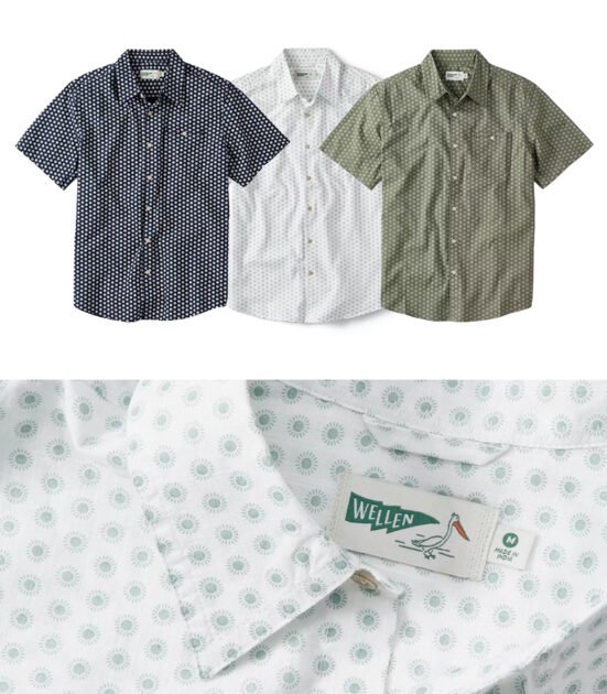 Certainement plus cher qu'un bouton à manches courtes de, disons, Target, mais les gens de Wellen essaient de faire valoir leurs arguments : tissu flammé en coton biologique teint dans l'espace, pli creux arrière flexible, boutons sunburst personnalisés, et ce motif solaire est plutôt génial. .