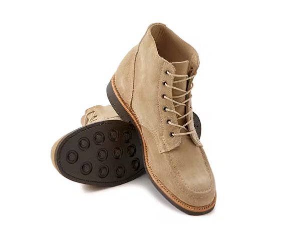 Certes… c'est un peu bizarre. Elles ont une forme de botte de travail de type Indy, une semelle en caoutchouc cloutée et un bout tablier… mais elles ne sont pas doublées et moins structurées. Peut-être quelque chose pour ceux qui aiment porter des bottes et détestent mettre de côté leurs bottes de travail plus lourdes inspirées du patrimoine pour l'été. Cela pourrait être le baume qui fera tomber ces types. Fabriquées en Angleterre par les mêmes personnes qui fabriquent les fameuses chukkas montantes qui…. (Oh, attendez…)