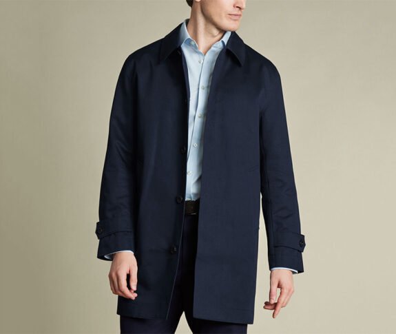 Pas de gilet. Juste un mac intemporel. Collier standard / traditionnel ici. Les Britanniques savent certainement quelque chose sur la pluie.