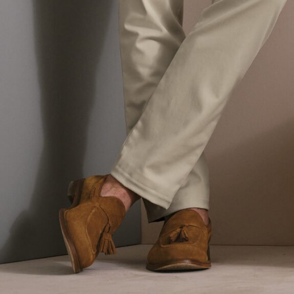 Pour ceux qui aiment un gland classique sur leurs mocassins d'été en daim. Également disponible en cuir lisse brun ou noir.