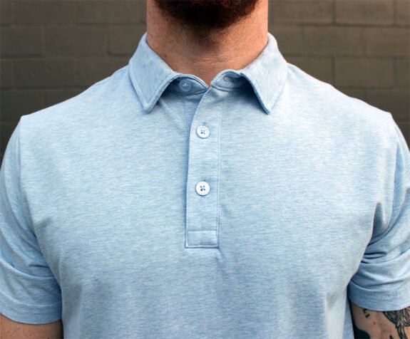 Plaquet à trois boutons, coton à 46% doux et extensible, 46% modal, 8% de mélange en spandex, et le collier a (non amovible) reste intégré pour le garder frais. Dirt bon marché avec la vente de 30% de réduction qu'ils fonctionnent. 8 couleurs / motifs.