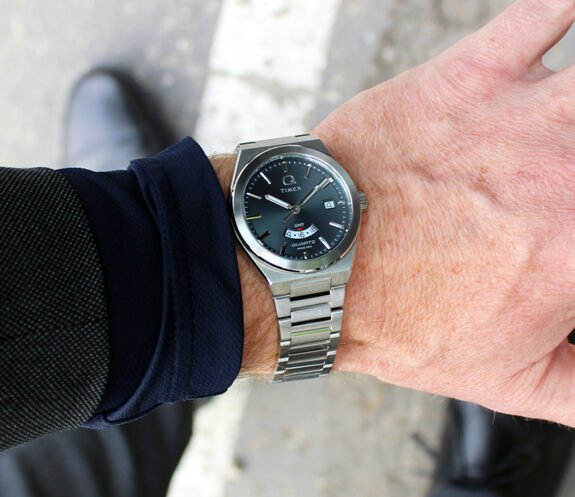 Habituellement, le grand «Q» est un absence car il peut être maladroit et bizarre sur d'autres cadrans, mais cela a l'air assez décent car il équilibre la découpe «sourire» GMT à 6 heures. Boîtier de 39 mm bon marché, bien proportionné, style GADA et le bracelet H-Link est assez agréable. Aussi, le mouvement n'a pas Faites en sorte que les montres TimeX fassent les autres montres Timex. Ne sera pas tout le monde de Earl Gray, mais si vous cherchez une montre de sport de bracelet intégrée abordable qui peut également être habillée, alors celle-ci est sacrément bonne pour 150 $ (grâce au code de 20%.)