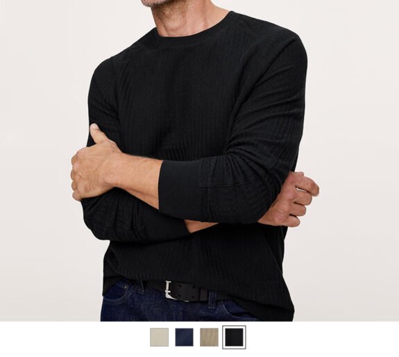 Comme il s'agit d'un style basique (un t-shirt à manches longues), BR les a certainement rendus intéressants. Double tricot pour un peu plus de punch, texture à chevrons, et les coutures sont placées de manière à lui donner un aspect quelque part entre un t-shirt et un pull. Quatre couleurs. Cela pourrait être un gagnant discret. Et la preuve qu'on peut regarder vraiment bien lorsqu'il est habillé avec désinvolture.