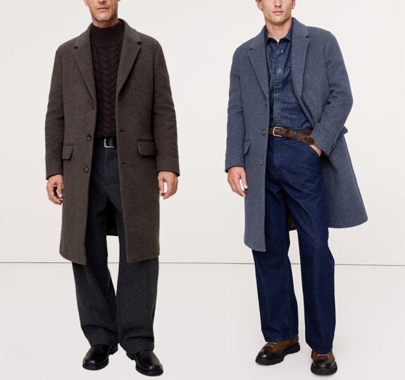 Les manteaux en laine mélangée de BR sont toujours un succès saisonnier, mais cette année, ils ont opté pour quelques couleurs décentrées. Pas de charbon de bois ? Pas de noir ou de vrai bleu marine ? Que donne BR ? Découvrez également les pantalons de ces modèles. Écoutez, le skinny est sorti (Dieu merci) mais ces pantalons sont énormes.