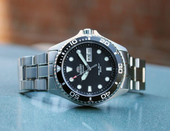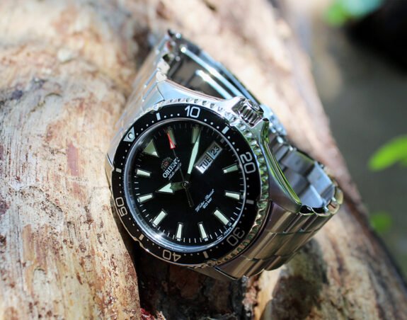 Élégant et un peu méchant. Diamètre 41,8 mm. « Nager » à un prix loin d’être comparable au territoire des « baleines » des marques de luxe. Mouvement automatique interne. Disponible en plusieurs couleurs. Revue complète ici.