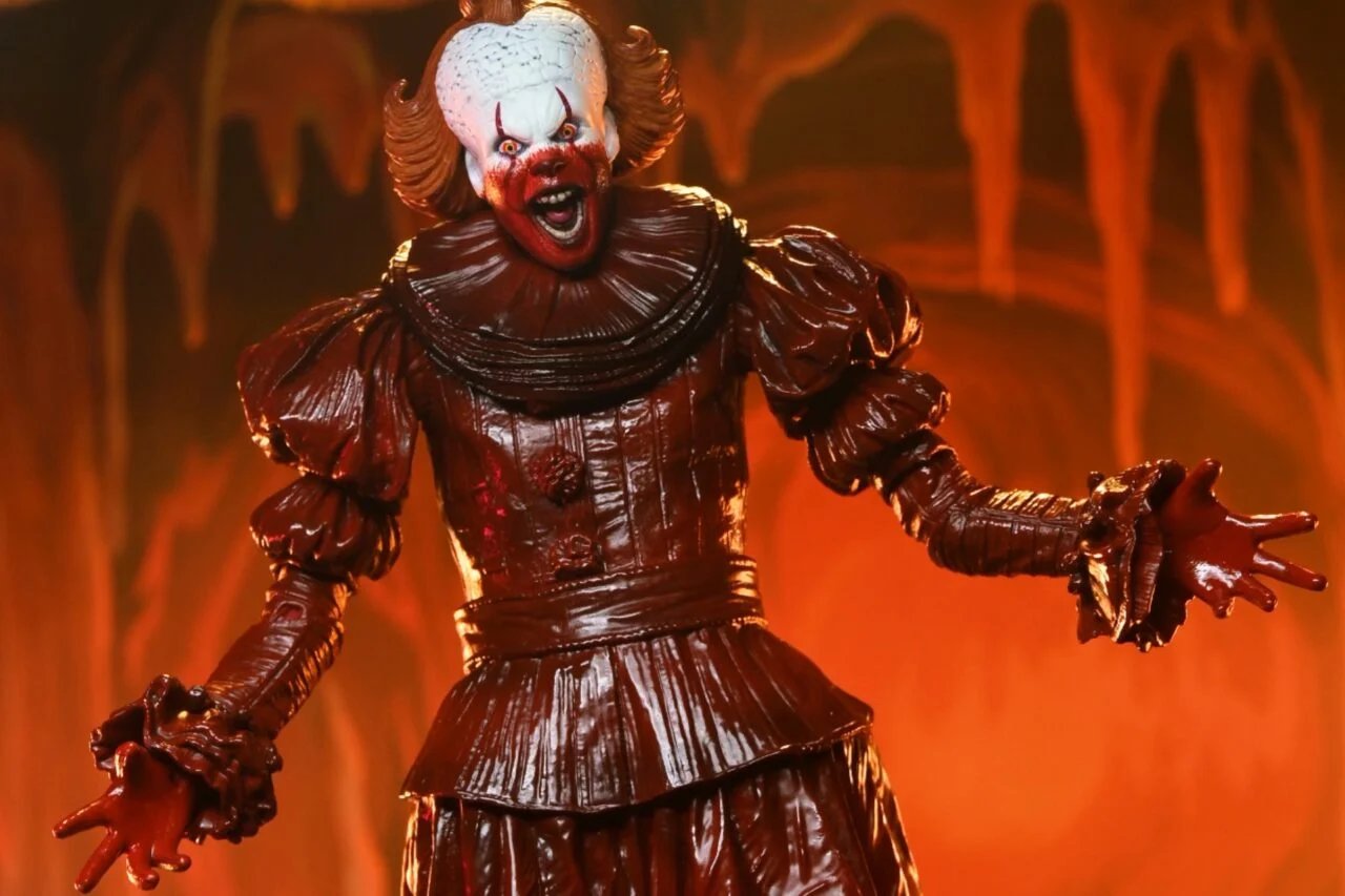 « Du monde tordu de Stephen King et de la série HBO Informatique : Bienvenue à DerryNECA lance Ultimate Blood Pennywise ! », le site de NECA, où vous pouvez précommander la figurines'exclame. « Le clown dansant cauchemardesque est de retour pour terroriser Derry – et votre étagère – en tant que figurine d'action ultime entièrement articulée. D'une taille de 7 pouces, Pennywise présente une décoration horrible et imbibée de sang et des têtes et des mains interchangeables. Livré dans un emballage boîte-fenêtre adapté aux collectionneurs avec rabat avant qui s'ouvre. «