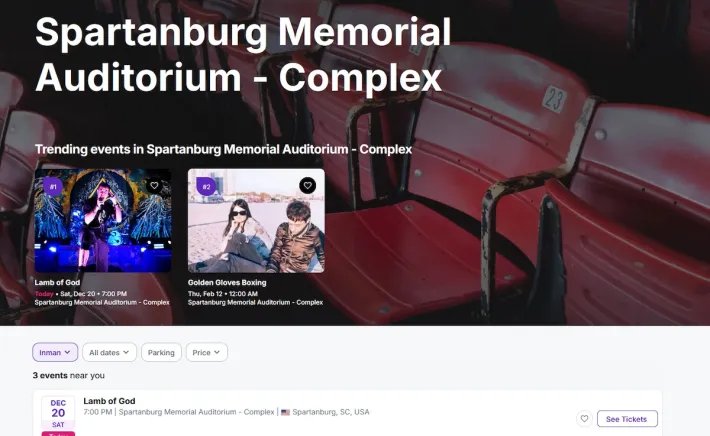 L'événement prévu pour le 20 décembre s'appelait en fait « Behold The Lamb Of God », un concert de l'auteur-compositeur et auteur chrétien Andrew Peterson, qui tourne apparemment son album concept de Noël du même nom depuis plus de deux décennies. Il s'est produit au Spartanburg Memorial Auditorium et, selon les médias locaux, le site Web de la salle et Ticketmaster ont tous deux répertorié avec précision les billets pour le concert. StubHub, cependant, a utilisé une image de Lamb Of God, le groupe.