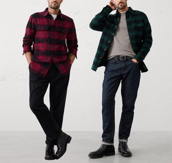 Doubles poches poitrine style chemise de travail. Divers plaids. Notez que certaines couleurs/motifs sont devenus des ventes finales, donc tout ce qui est étiqueté comme tel ne peut être ni retourné ni échangé. Les options rouge et verte présentées ci-dessus, au moment de la publication, étaient toujours retournables/échangeables.