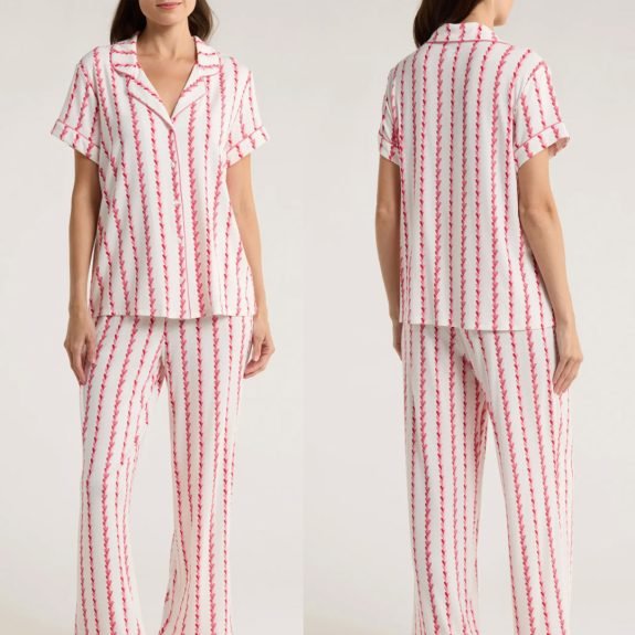 Un joli pyjama qui sera doux à ouvrir et confortable à porter au printemps qui arrive bientôt. Il existe de nombreuses autres couleurs unies disponibles si les cœurs ne sont tout simplement pas son truc.