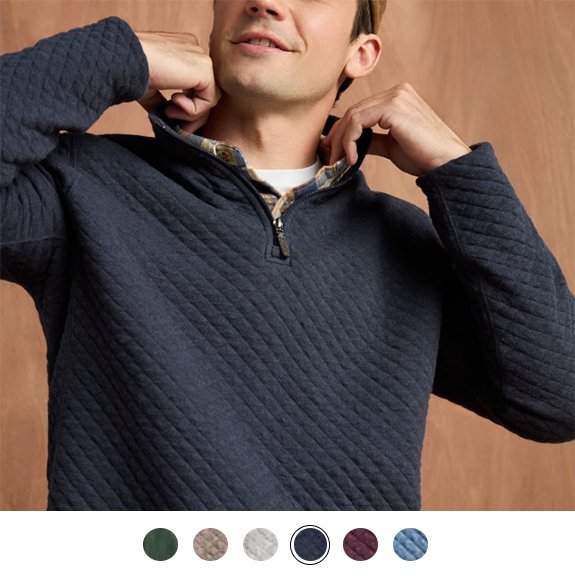 4,5/5 étoiles après plus de 8oo avis. Le quart de zip omniprésent et dominant l'air du temps, uniquement dans un tissu matelassé en coton mélangé très confortable. Il existe des « sueurs » adaptées au bureau Smart-Casual.