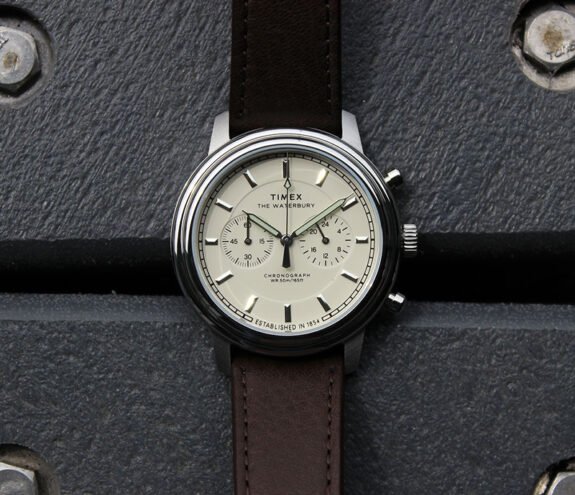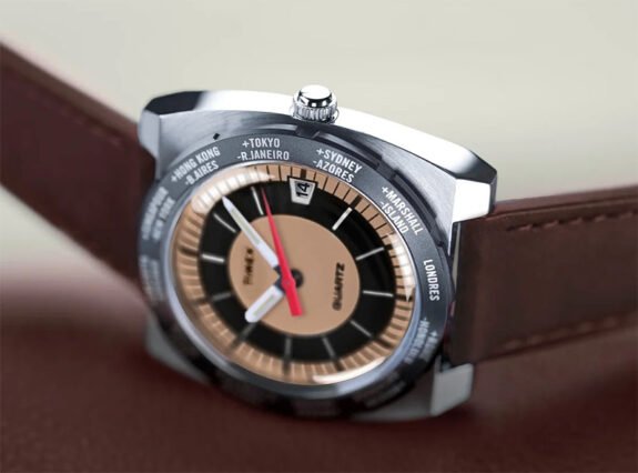 S'appuie sur leur ligne rétro-futur « Jet », cette fois avec un mouvement chrono à quartz et un style vestimentaire élégant. Le diamètre du boîtier de 40 mm est restreint, mais pas rétréci. La sangle est dotée de broches à dégagement rapide pour un changement facile.