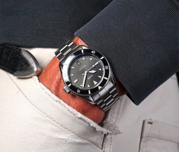 Une folie et pas en vente, mais ils se vendent souvent. Une « alerte stock » en vaut donc la peine. Look de montre de plongée classique, diamètre de boîtier de taille moyenne de 39 mm. Mouvement automatique japonais. Glace saphir. 200 m de résistance à l'eau. Broches à dégagement rapide sur le bracelet pour un remplacement facile du bracelet. Et tout cela se met en place ici aux États-Unis. Pas mal pour moins de 800$.