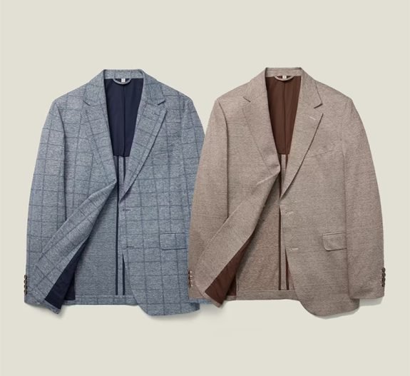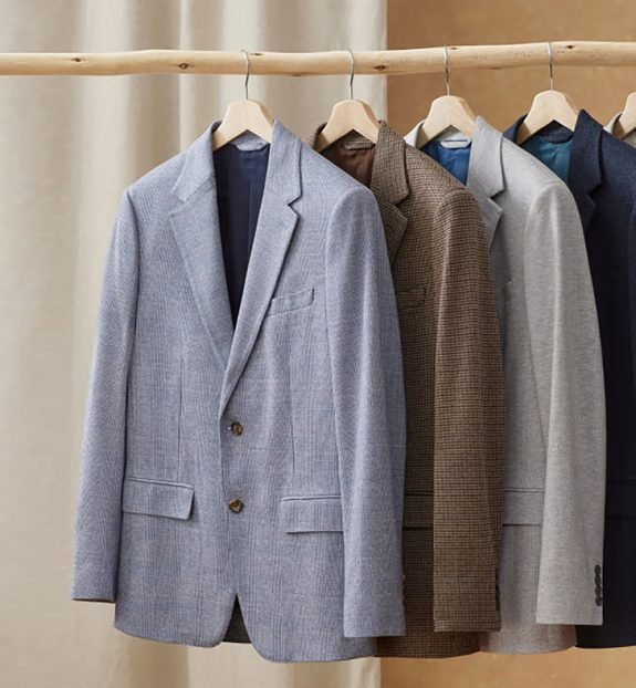 Beaucoup de couleurs et de motifs. La structure d'un véritable manteau de sport fabriqué avec des tissus tricotés flexibles et confortables. Un de leurs best-sellers. Pas aussi tombant que beaucoup d’autres « swazers » en tricot d’autres marques. Ces faire ont une vraie forme pour eux. En fin de compte : si vous voulez quelque chose de moins formel qu’un blazer tissé standard, mais que vous pouvez quand même vous habiller avec une chemise à col, alors ce sont ceux-là. Les tissus sont soit en coton, soit en mélange de laine, soit en mélange de coton.