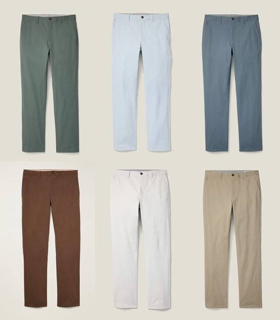Couleurs sans icônes uniquement. Les icônes comme le kaki et le bleu marine et ainsi de suite sont exclues. Mais il existe encore de nombreuses options de couleurs « limitées » parmi lesquelles choisir. Je suis presque sûr qu'il est normal de les qualifier de nouveau produit phare des Bonobos. La première itération du 2.0 contenait beaucoup de polyester dans le mélange. Ils ont abandonné cela et ont plutôt augmenté la quantité d'étirement : 92 % coton / 8 % élasthanne. Je me suis récemment acheté quelques paires et elles sont la nouvelle référence dans les bureaux à domicile de Dappered. Confortable, beaucoup de flexibilité, facile à laver/sécher/etc.