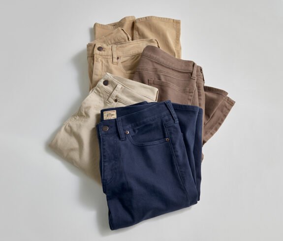 Les nouvelles 5 poches relookées de J. Crew. Quelque chose qui se situe entre les chinos classiques et les jeans. C'est le style de pantalon que beaucoup d'entre nous portent plusieurs fois par semaine, voire presque tous les jours. 97 % coton/3 % élasthanne.